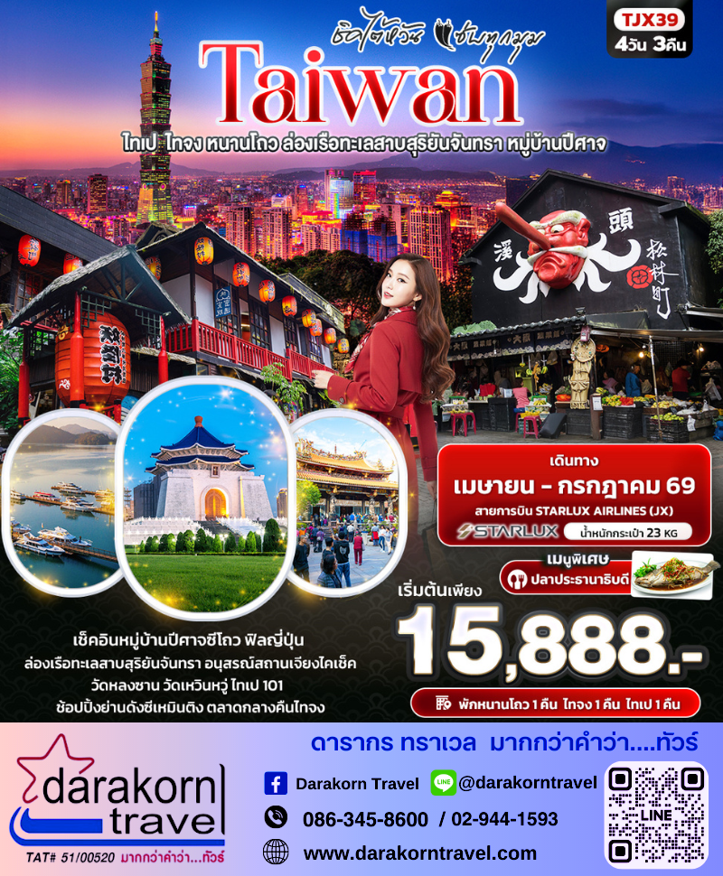 | DAY4 | ร้าน Cosmetic – ถ่ายรูปด้านหน้าตึกไทเป 101 (ไม่รวมค่าขึ้นตึก) – ท่าอากาศยานนานาชาติไต้หวันเถาหยวน – ท่าอากาศยานนานาชาติสุวรรณภูมิ |