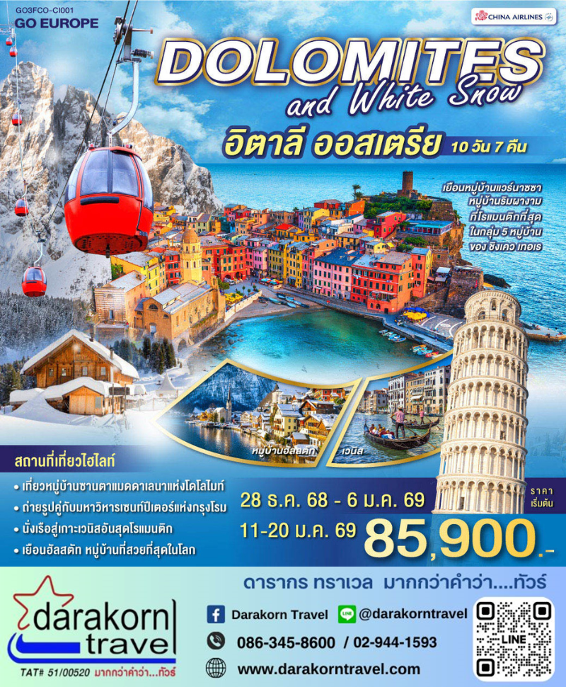 | DAY5 | เมสเตร้ – เวโรนา – เวโรนา อารีนา – หมู่บ้านซานตาแมดดาเลนา – เทรนโต |