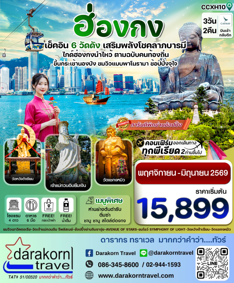 ทัวร์ฮ่องกง - พระใหญ่นองปิง ไหว้พระ 6 วัดดัง 3วัน2คืน(CX)เดือนพฤศจิกายน 2568 - มิถุนายน 2569