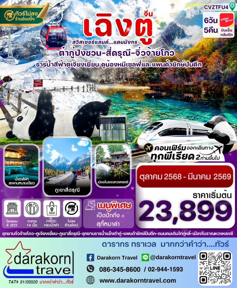 DAY6 | จตุรัสหย่างเทียนวู-แพนด้าเซลฟี่-กลับเฉิงตู-วัดต้าฉือ-แพนด้ายักษ์ปีนตึก- ถนนคนเดินไท่กู่หลี่ชุนซีลู่-เดินทางกลับกรุงเทพฯ(สุวรรณภูมิ) |