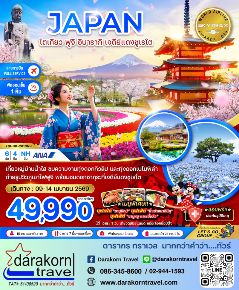 ทัวร์ญี่ปุ่น - โตเกียว ฟูจิ อิบารากิ เจดีย์แดงชูเรโต 6วัน4คืน(NH)เดือนเมษายน 2569