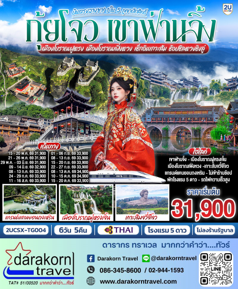 ทัวร์จีน - บินตรงฉางซา กุ้ยโจว เขาฟ่านจิ้ง 1 ใน 5 ภูเขาศักสิทธิ์ 6วัน5คืน(TG)เดือนกรกฎาคม - ตุลาคม 2569