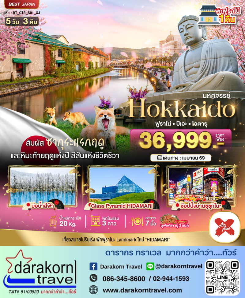 | DAY4 | ช้อปปิ้งปลอดภาษี • พระใหญ่อะตะมะไดบุตสึ • คลองโอตารุ • พิพิธภัณฑ์กล่องดนตรี • นาฬิกาไอน้ำโบราณ • ถนนซาไกมาจิ • ช้อปปิ้งทานุกิโคจิ |