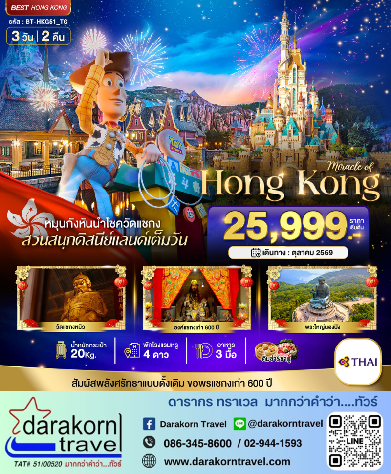 ทัวร์ฮ่องกง - มหัศจรรย์...ฮ่องกง นองปิง ดิสนีย์แลนด์ 3วัน2คืน(TG)เดือนตุลาคม 2569