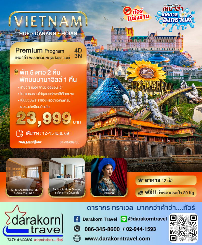 | DAY1 | ดอนเมืองกรุงเทพฯ•ดานัง เวียดนาม •เว้ •ใส่ชุดประจ าชาติ •พระราชวังเว้•นั่งสามล้อซิโคล |