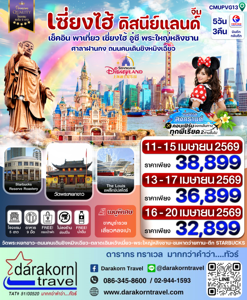 | DAY5 | เซี่ยงไฮ้-วัดพระหยกขาว-ตึก STARBUCKS-ตลาดเฉิงหวังเมี่ยว-Shopping Outlet-สนามบินเซี่ยงไฮ้-กรุงเทพฯ |