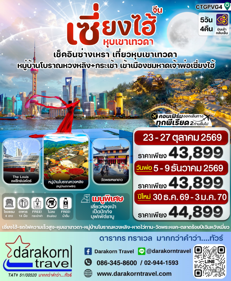 ทัวร์จีน - เซี่ยงไฮ้ ซ่างเหรา หุบเขาเทวดา 5วัน4คืน(TG)เดือนตุลาคม - ธันวาคม 2569