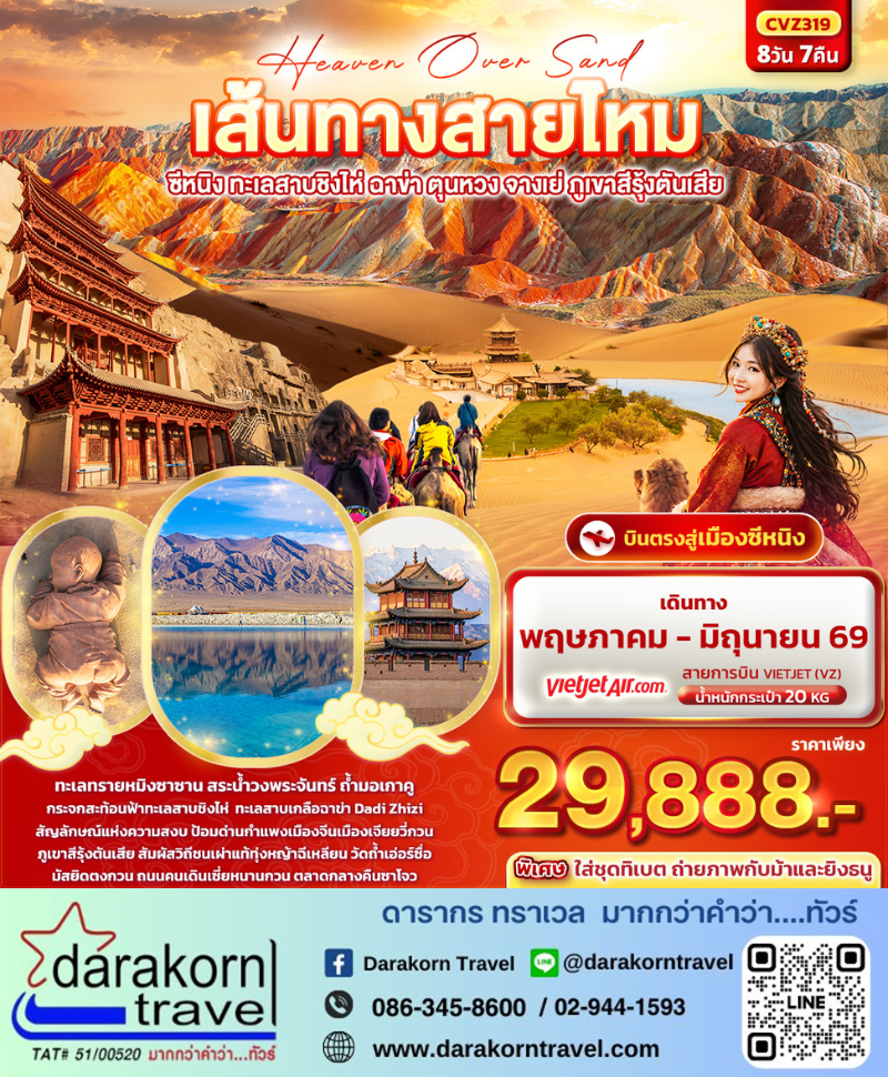 | DAY8 | เมืองซีหนิง – ร้านหยก – ร้านผ้าไหม – วัดถ้ำเอ่อร์ซื่อ – มัสยิดตงกวน(ถ่ายรูปด้านนอก)-ถนนคนเดินเซี่ยหนานกวน – สนามบินนานาชาติซีหนิงเฉาเจียเป่า -ท่าอากาศยานนานาชาติสุวรรณภูมิ |