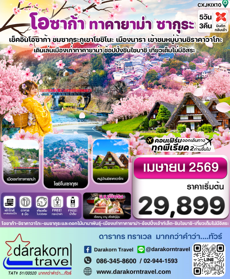| DAY3 | หมู่บ้านมรดกโลกชิราคาวาโกะ – เมืองทาคายาม่า – ถนนซันมาจิซูจิ– สะพานนาคาบาชิ – อิออน มอลล |