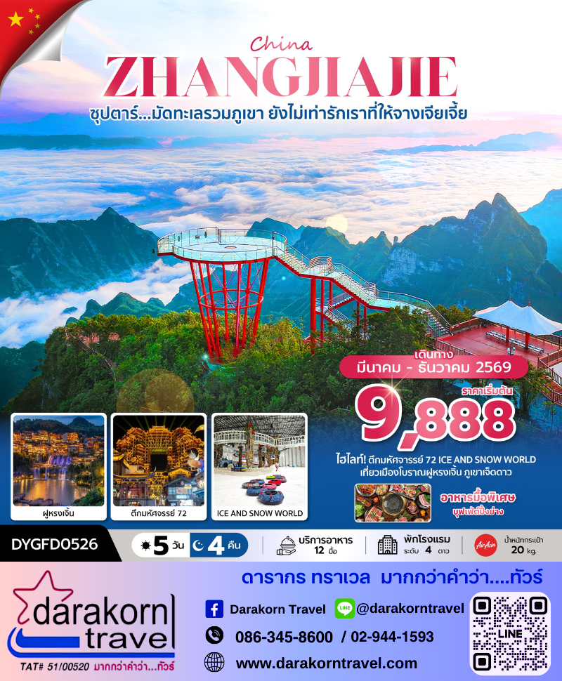 ทัวร์จีน - ซุปตาร์...มัดทะเลรวมภูเขา ยังไม่เท่ารักเราที่ให้จางเจียเจี้ย 5วัน4คืน(FD)เดือนมีนาคม - ธันวาคม 2569
