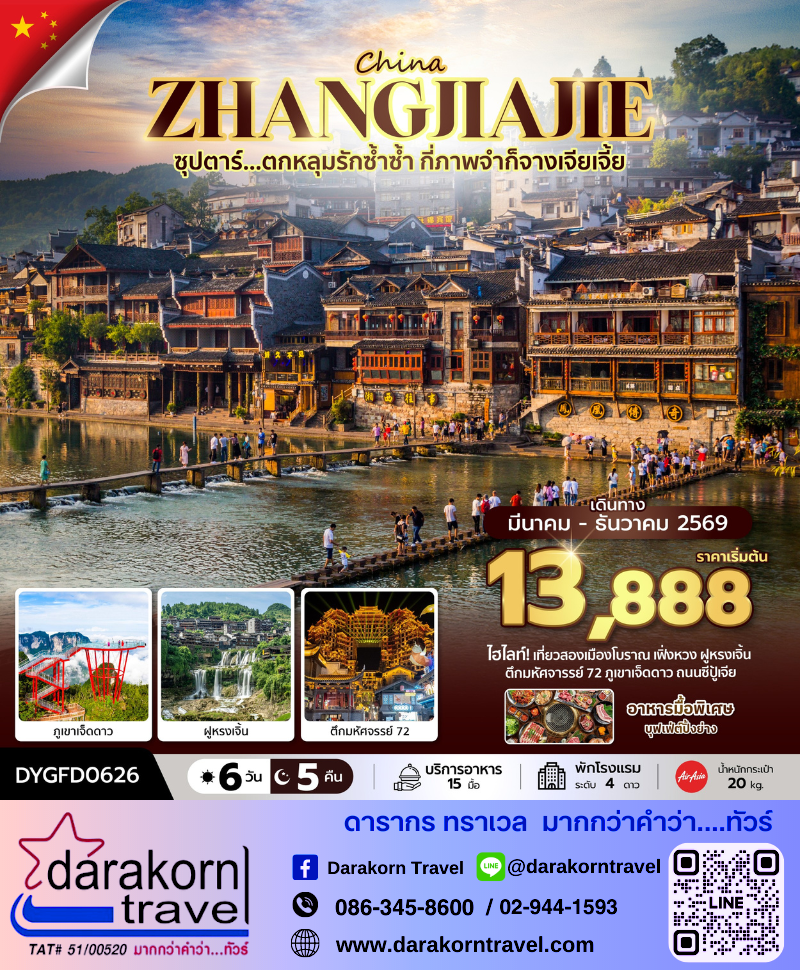 ทัวร์จีน - ซุปตาร์...ตกหลุมรักซ้ำซ้ำ กี่ภาพจำก็จางเจียเจี้ย 6วัน5คืน(FD)เดือนมีนาคม - ธันวาคม 2569