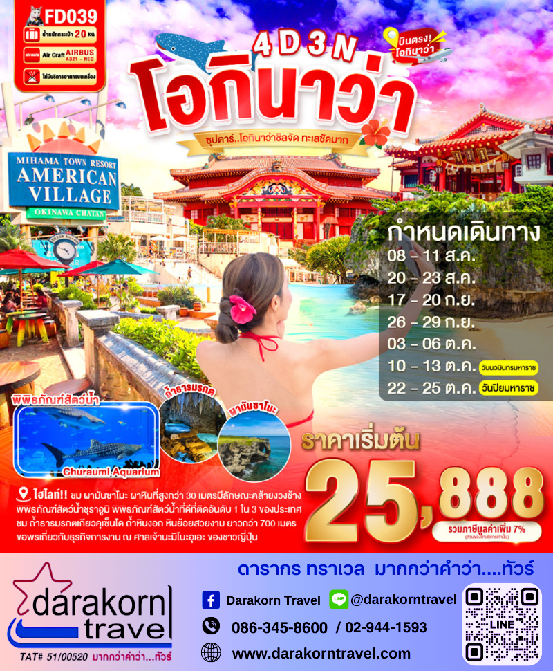 | DAY4 | ศาลเจ้านะมิโนะอุเอะ – เอาท์เล็ตมอลล์ อาชิบิน่า – ท่าอากาศยานนาฮะ โอกินาว่า – ท่าอากาศยานดอนเมือง |
