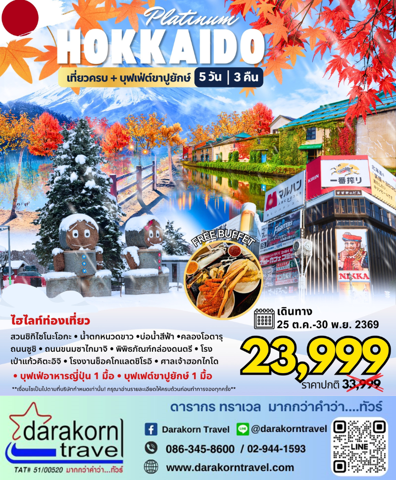 | DAY4 | ศาลเจ้าฮอกไกโด – คลองโอตารุ – พิพิธภัณฑ์กล่องดนตรีโอตารุ – ถนนซูชิยะโดริ – โรงงานเป่าแก้วคิตะอิจิ – ถนนซาไกมาชิ – โรงงานช็อคโกแลต ชิโรอิ โคอิบิโตะ |