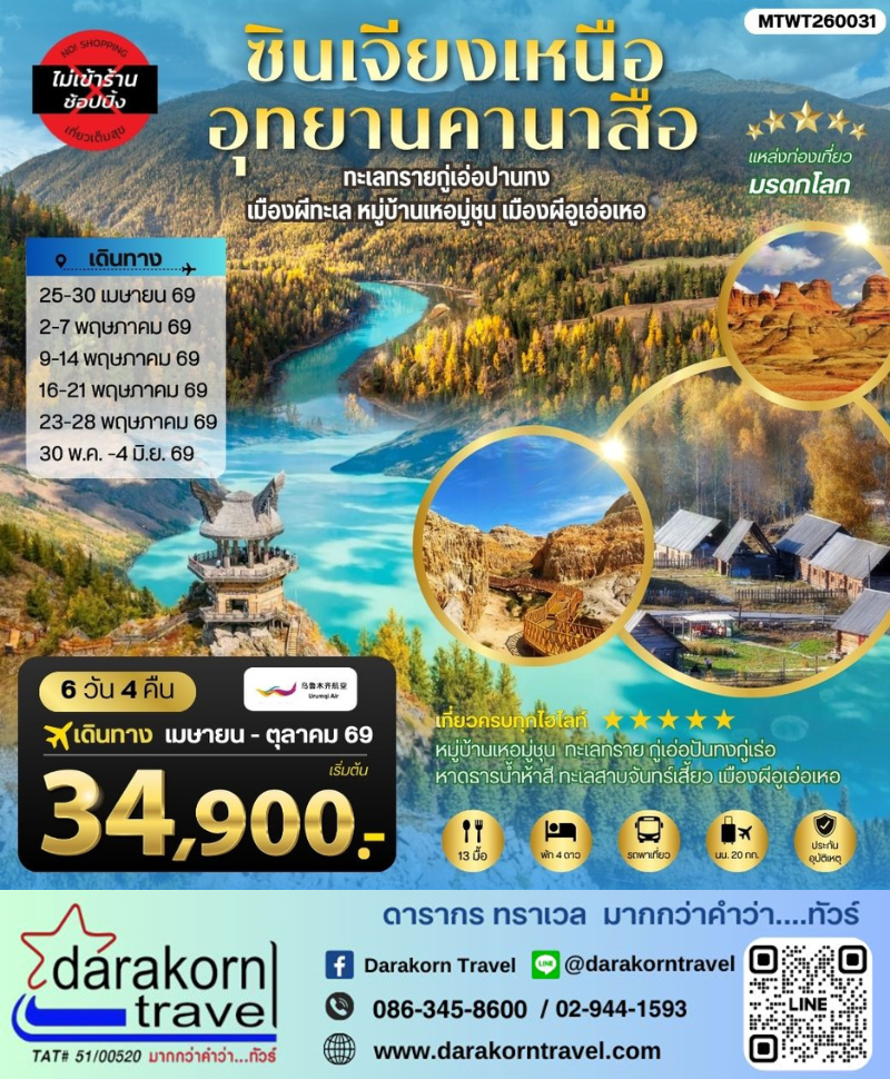 | DAY6 | เมืองอูรุมุฉี–บินกลับกรุงเทพฯ (แวะเปลี่ยนเครื่องและผ่านด่านตรวจคนเข้าเมืองที่สนามบินลั่วหยาง) |