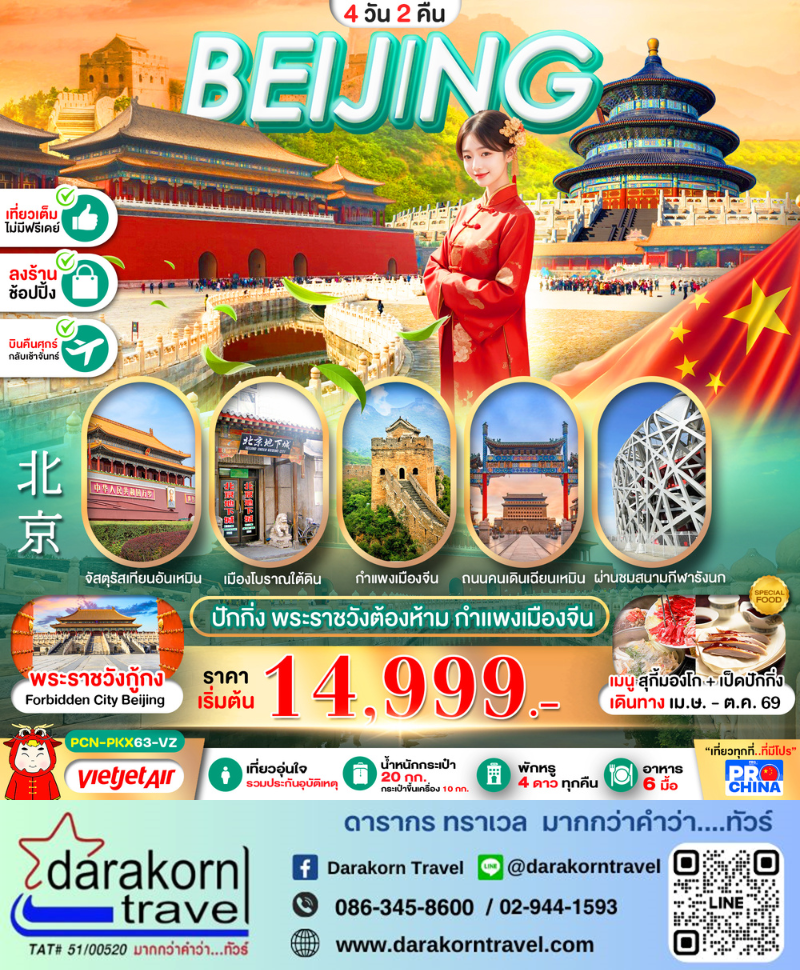 | DAY2 | จตุรัสเทียนอันเหมิน – พระราชวังต้องห้าม – ร้านยางพารา – ถนนโบราณเฉียนเหมิน+Beijing Fun – ถนนหวังฝูจิ่ง – เมืองโบราณใต้ดิน |