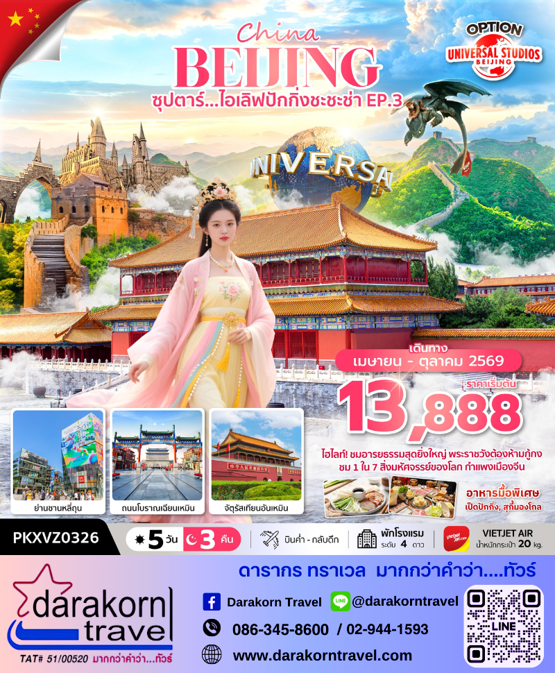 | DAY3 | อิสระท่องเที่ยวเต็มวัน หรือเลือกซื้อ OPTION เสริม OPTION A: UNIVERSAL BEIJING RESORT / OPTION B: CITY TOUR |