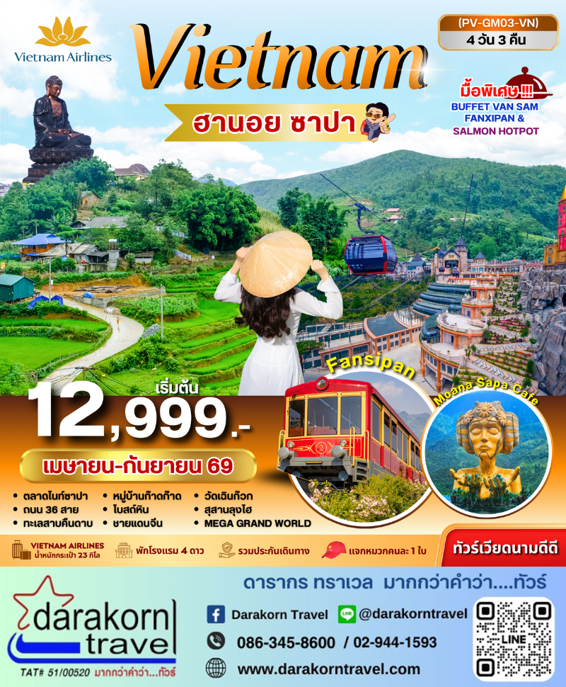 | DAY1 | สนามบินสุวรรณภูมิ – เมืองฮานอย ประเทศเวียดนาม – ตลาดไนท์ซาปา |