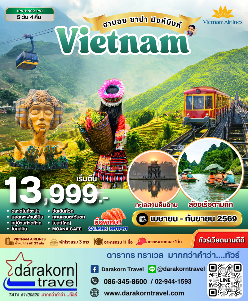 | DAY1 | กรุงเทพฯ สนามบินสุวรรณภูมิ–ออกเดินทางสู่เมืองฮานอย ประเทศเวียดนาม–นิงห์บิงห์ |