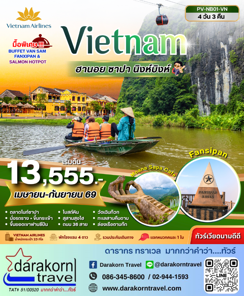 | DAY1 | สนามบินสุวรรณภูมิ – เมืองฮานอย ประเทศเวียดนาม – ตลาดไนท์ซาปา |