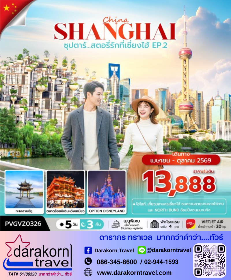 | DAY1 | สนามบินสุวรรณภูมิ – สนามบินเซี่ยงไฮ้ผู่ตง – เมืองเซี่ยงไฮ |