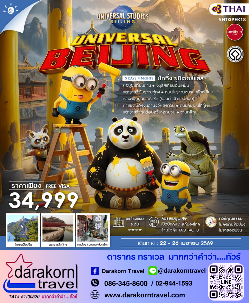 | DAY3 | สวนสนุกยูนิเวอร์แซลปักกิ่งเต็มวัน (รวมค่าเข้าสวนสนุก) |