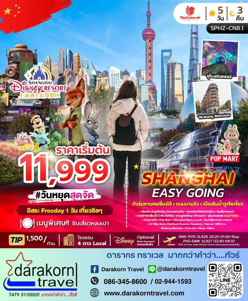 ทัวร์จีน - SHANGHAI EASY GOING 5วัน3คืน(SL)เดือนมีนาคม - ตุลาคม 2569