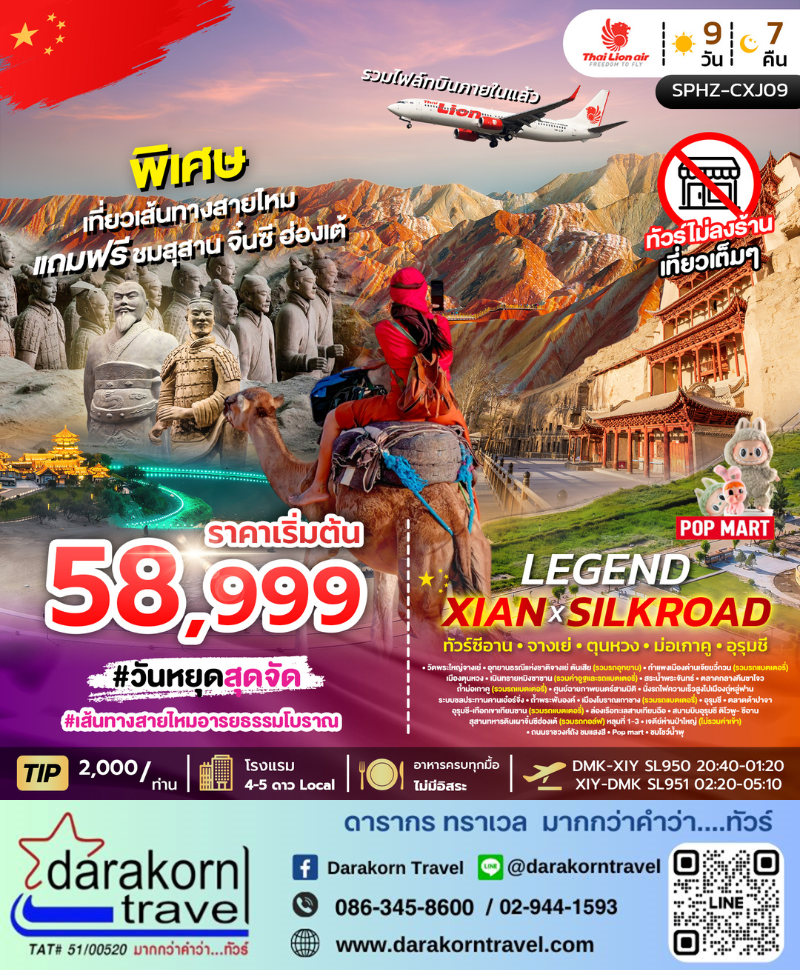 ทัวร์จีน - LEGEND XIAN X SILKROAD 9วัน7คืน(SL)เดือนเมษายน - ตุลาคม 2569