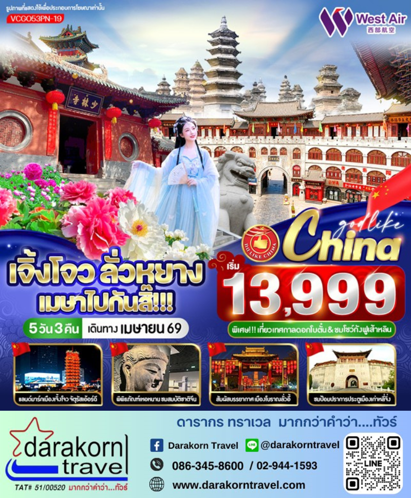 ทัวร์จีน - เจิ้งโจว ลั่วหยาง เมษาไปกันสิ๊!!! 5วัน3คืน(PN)เดือนเมษายน 2569