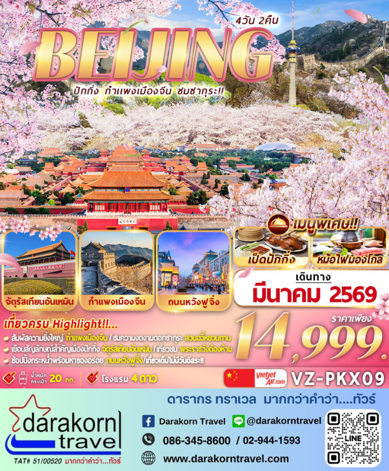 | DAY1 | สนามบินนานาชาติสุวรรณภูมิ (กรุงเทพฯ) VZ3718 (BKK– PKX 18.35 – 00.15) +1สนามบินนานาชาติปักกิ่งต้าซิง |