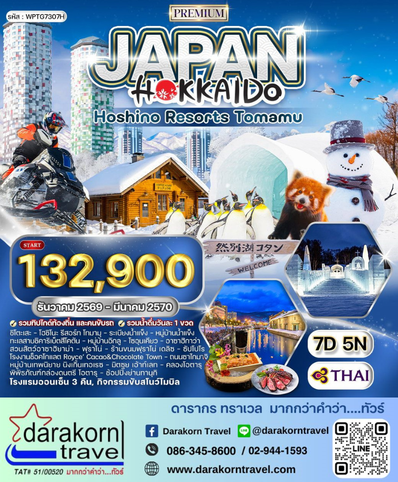 | DAY3 | กิจกรรมหิมะ (ขับสโนโมบิล และกระดานเลื่อนหิมะ) – ทะเลสาบชิคาริเบ็ตสึโคตัน -หมู่บ้านอิกลู ทะเลสาบชิคาริเบ็ตสึ – โซอุนเคียว – พักออนเซ็น |