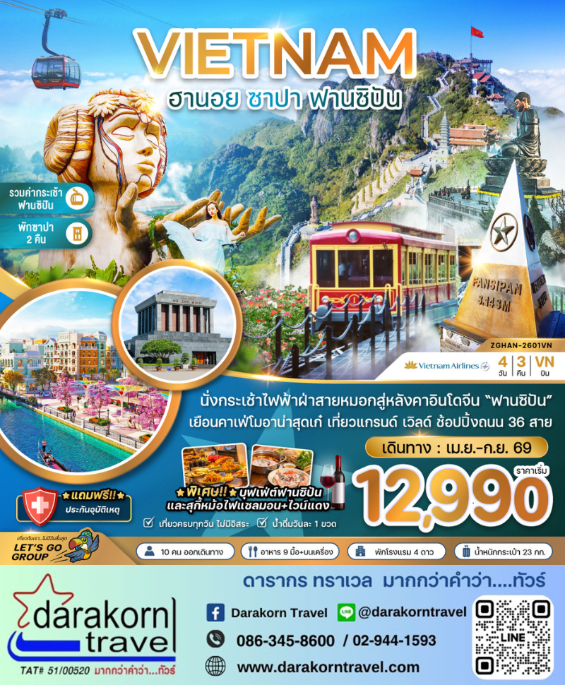 | DAY1 | สนามบินสุวรรณภูมิ – สนามบินนอยไบ – เมืองซาปา – ตลาดเลิฟมาร์เก็ต – ซันพลาซ่า ซาปา สเตชั่น |