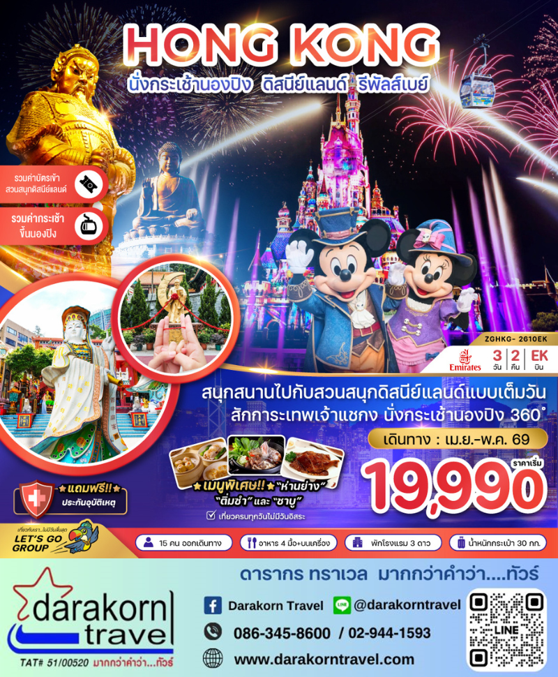 | DAY2 | นั่งกระเช้านองปิง – วัดโป่วหลิน – นมัสการพระใหญ่เทียนถาน-ฮ่องกงดิสนีย์แลนด์ ชมการแสดงดอกไม้ไฟ(บริการรถรับ – ส่ง) |