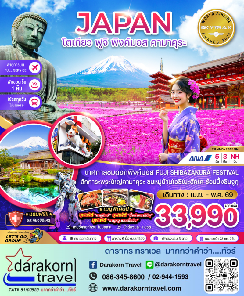 คามาคุระ – พระใหญ่ไดบุตซึ คามาคุระ – ศาลเจ้าทสึรุงะโอะกะ ฮะจิมังกู – หมู่บ้านโอชิโนะฮัคไค – อาบน้ำแร่ธรรมชาติ+ บุฟเฟ่ต์ขาปูยักษ