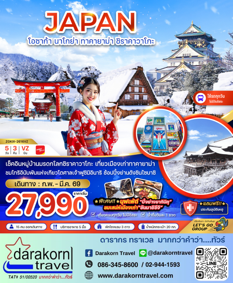 | DAY2 | สนามบินคันไซ – เกียวโต – วัดคิโยมิสึ – ถนนสายกาน้ำชา-ศาลเจ้าฟูชิมิอินาริ- อิออน มอลล |
