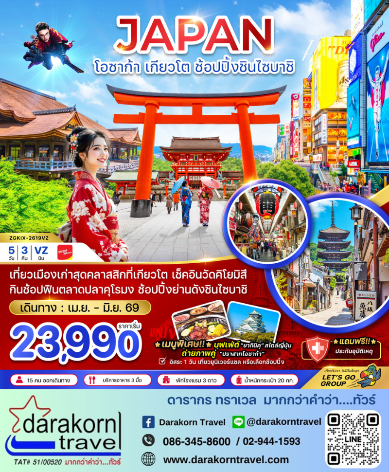 สนามบินคันไซ – เกียวโต – ศาลเจ้าฟูชิมิอินาริ – วัดคิโยมิสึ-ถนนสายกาน้ำชา – พิธีชงชาญี่ปุ่น – อิออน มอลล