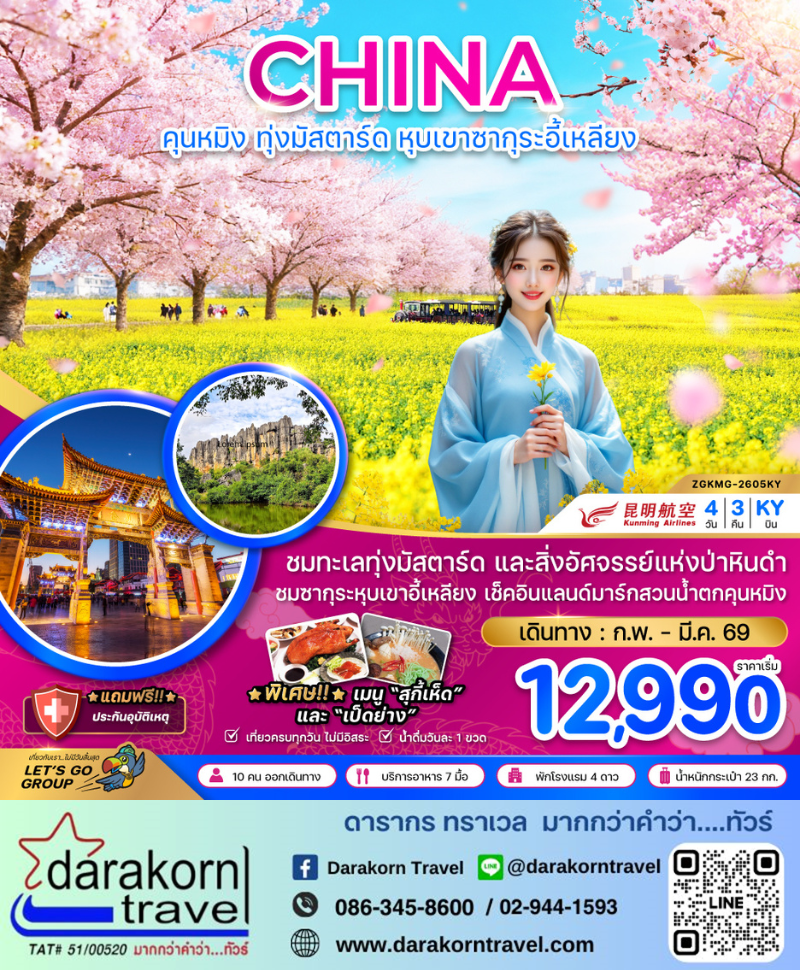 | DAY1 | สนามบินสุวรรณภูมิ – สนามบินคุนหมิงฉางสุ่ย |