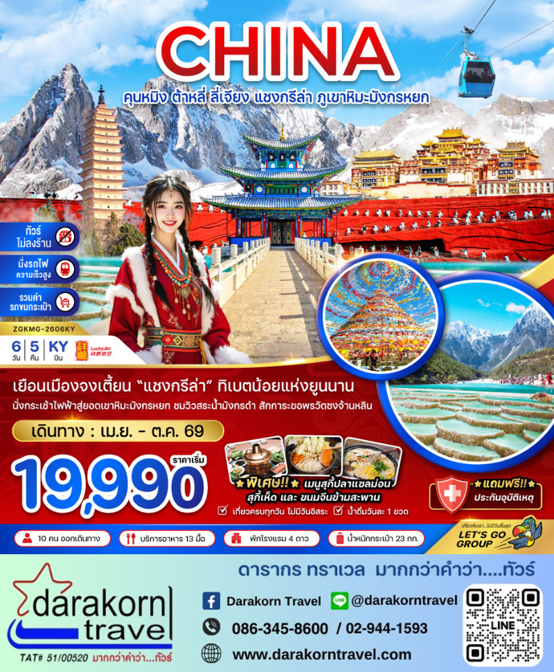 | DAY5 | ภูเขาหิมะมังกรหยก – โชว์จางอี้โหมว – ทะเลสาบไป๋สุยเหอ– นั่งรถไฟความเร็วสูง – เมืองคุนหมิง |