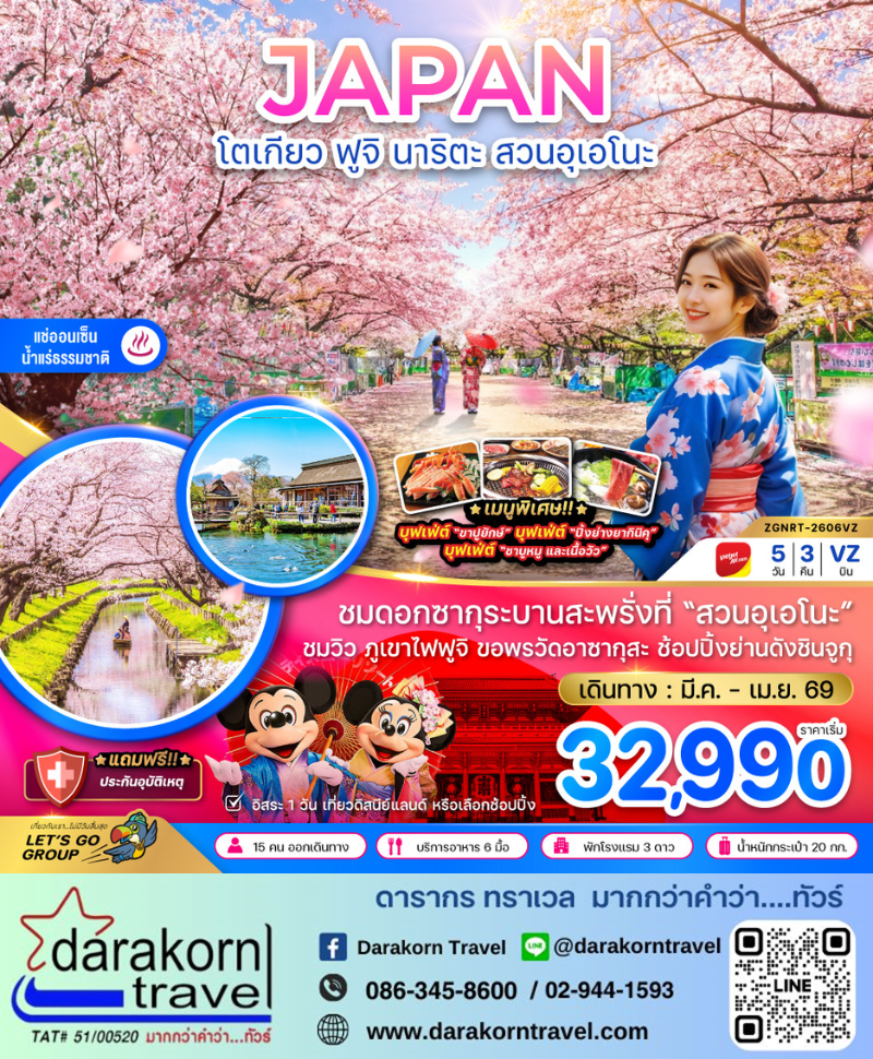 | DAY3 | ดิวตี้ฟรี – โตเกียว – ชมซากุระ สวนอุเอโนะ – ชินจูกุ – นาริตะ |