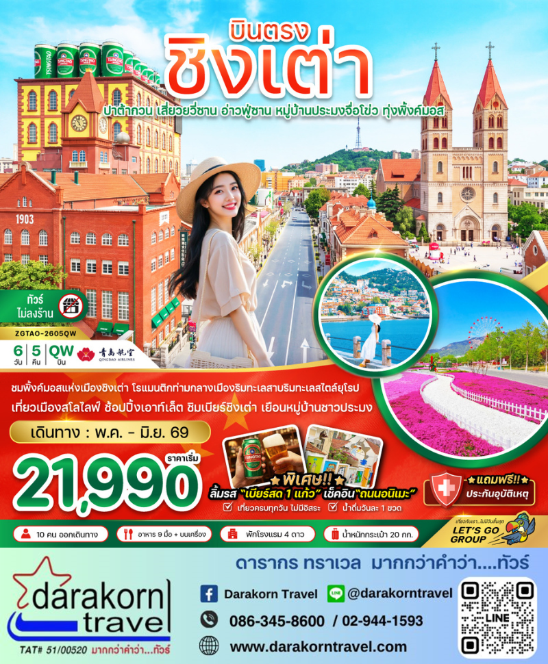 | DAY1 | สนามบินสุวรรณภูมิ – สนามบินชิงเต่า – เมืองชิงเต่า |