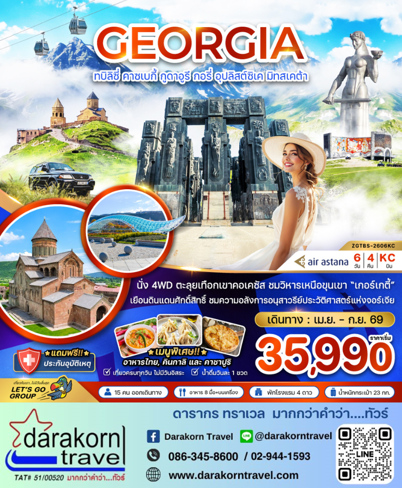 | DAY1 | สนามบินสุวรรณภูมิ – สนามบินอัลมาตี – สนามบินทบิลิซี่– เมืองทบิลิซ |