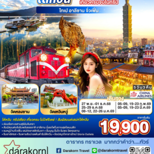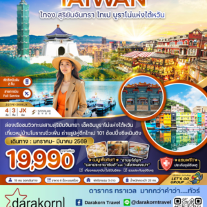 ทัวร์ไต้หวัน – ไต้หวันครบสูตร เที่ยวครบจบในทริป 5วัน3คืน(CI)เดือนธันวาคม 2568 – มีนาคม 2569