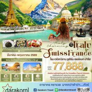 ทัวร์ยุโรป – Truly Charming Italy Swiss France 10วัน7คืน(SV)เดือนมีนาคม – พฤษภาคม 2569