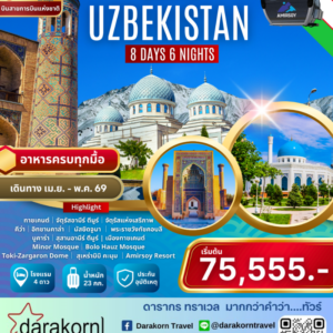 ทัวร์อุซเบกิสถาน – Grand Uzbekistan แกรนด์อุซเบกิสถาน 8วัน6คืน(HY)เดือนเมษายน – พฤษภาคม 2569