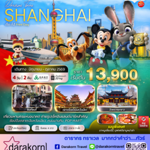 ทัวร์จีน – เซี่ยงไฮ้ สวนสนุกดิสนีย์แลนด์ 4วัน2คืน(9C)เดือนมิถุนายน – ตุลาคม 2569