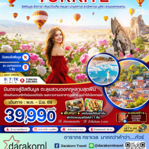 ทัวร์ตุรกี – ตุรเคีย อิสตันบูล อังการา คัปปาโดเกีย คอนยา ปามุคคาเล ซานัคคาเล บูร์ซา (สวนดอกกุหลาบ) 9วัน7คืน(TK)เดือนพฤษภาคม – มิถุนายน 2569