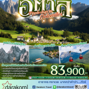 ทัวร์ยุโรป – TRIPPLE DAYS IN DOLOMITES 8วัน5คืน(EK)เดือนพฤษภาคม – กันยายน 2569