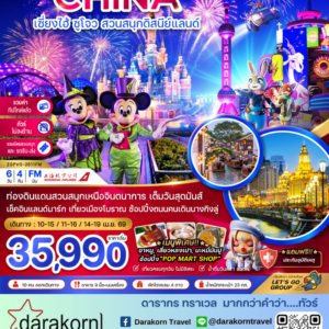 ทัวร์จีน – เซี่ยงไฮ้ สวนสนุกดิสนีย์แลนด์ (รวมบัตรเข้าสวนสนุก และรถรับส่งแล้ว) 5วัน4คืน(FM)เดือนเมษายน 2569