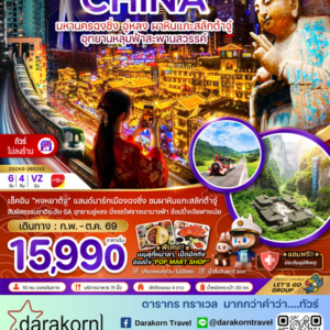 ทัวร์จีน – มหานครฉงชิ่ง อู่หลง ผาหินแกะสลักต้าจู๋ อุทยานหลุมฟ้าสะพานสวรรค์ (ไม่ลงร้าน) 6วัน4คืน(VZ)เดือนกุมภาพันธ์ – ตุลาคม 2569