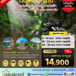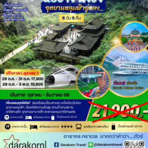ทัวร์จีน – บินตรง ลงฉงชิ่ง อู่หลง หลุ่มบ่อฟ้า รถไฟแฟนซี เขานางฟ้า 6วัน4คืน(VZ)เดือนพฤศจิกายน 2568 – มีนาคม 2569