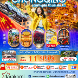 ทัวร์จีน – ฉงชิ่ง ฟรีเดย์ รถไฟฟ้าทะลุตึก ตึก โป๊ะ ตึก ตึก ตึกหงหยาต้ง 5วัน4คืน(HU)เดือนพฤศจิกายน – ธันวาคม 2568
